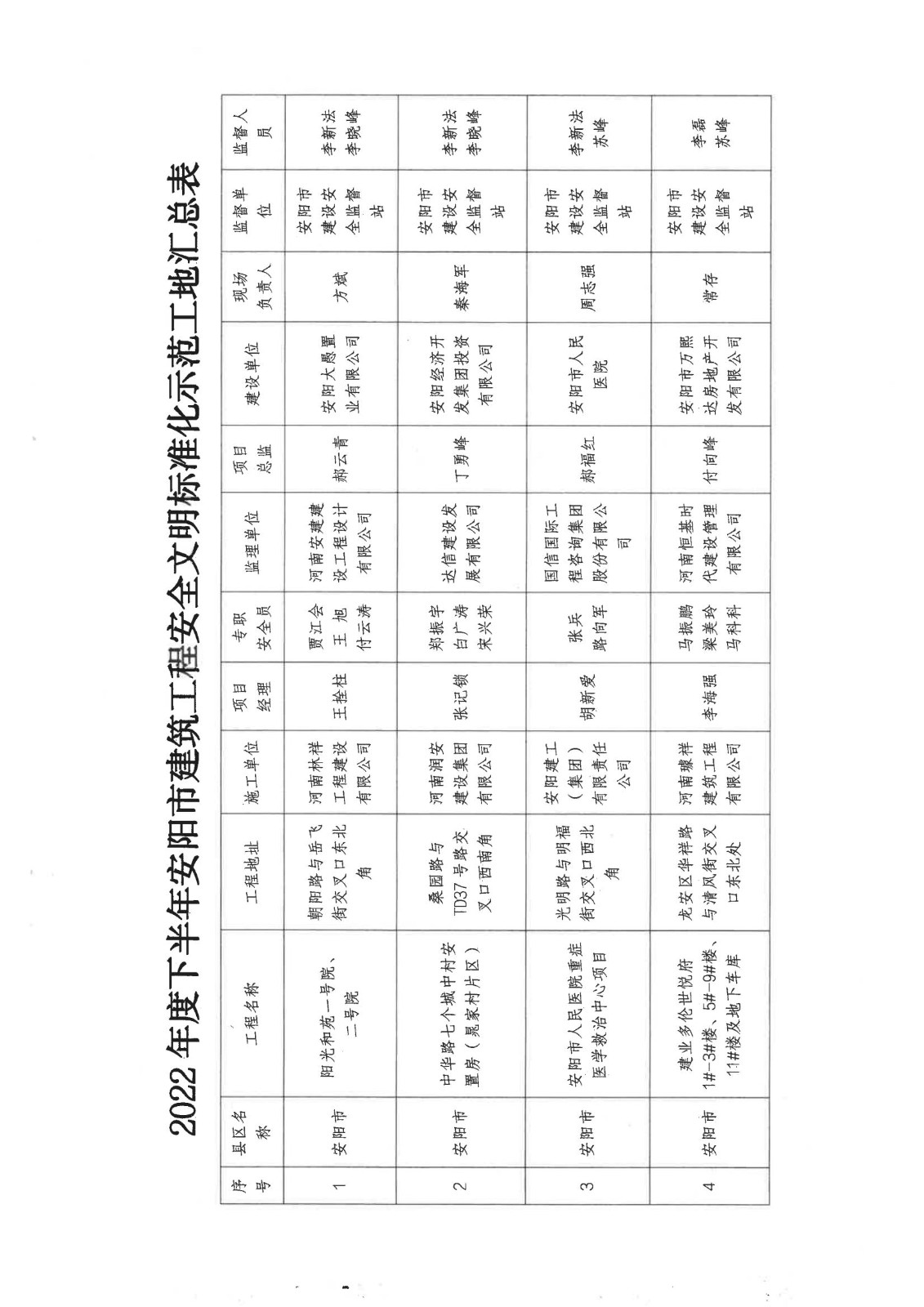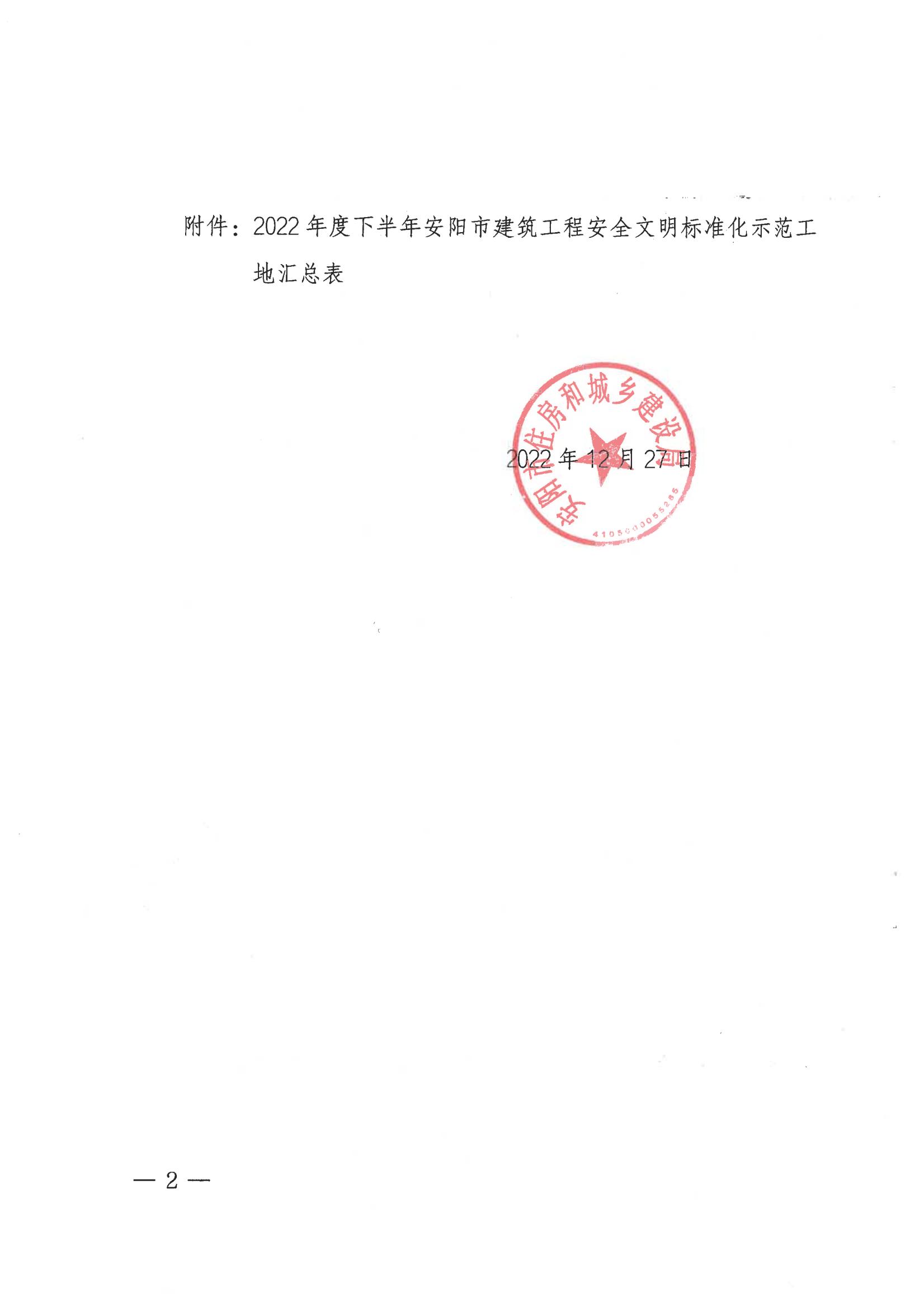 安陽市住房和城鄉(xiāng)建設(shè)局關(guān)于公布2022年度下半年安陽市建筑工程安全文明標(biāo)準(zhǔn)化示范工地的通知