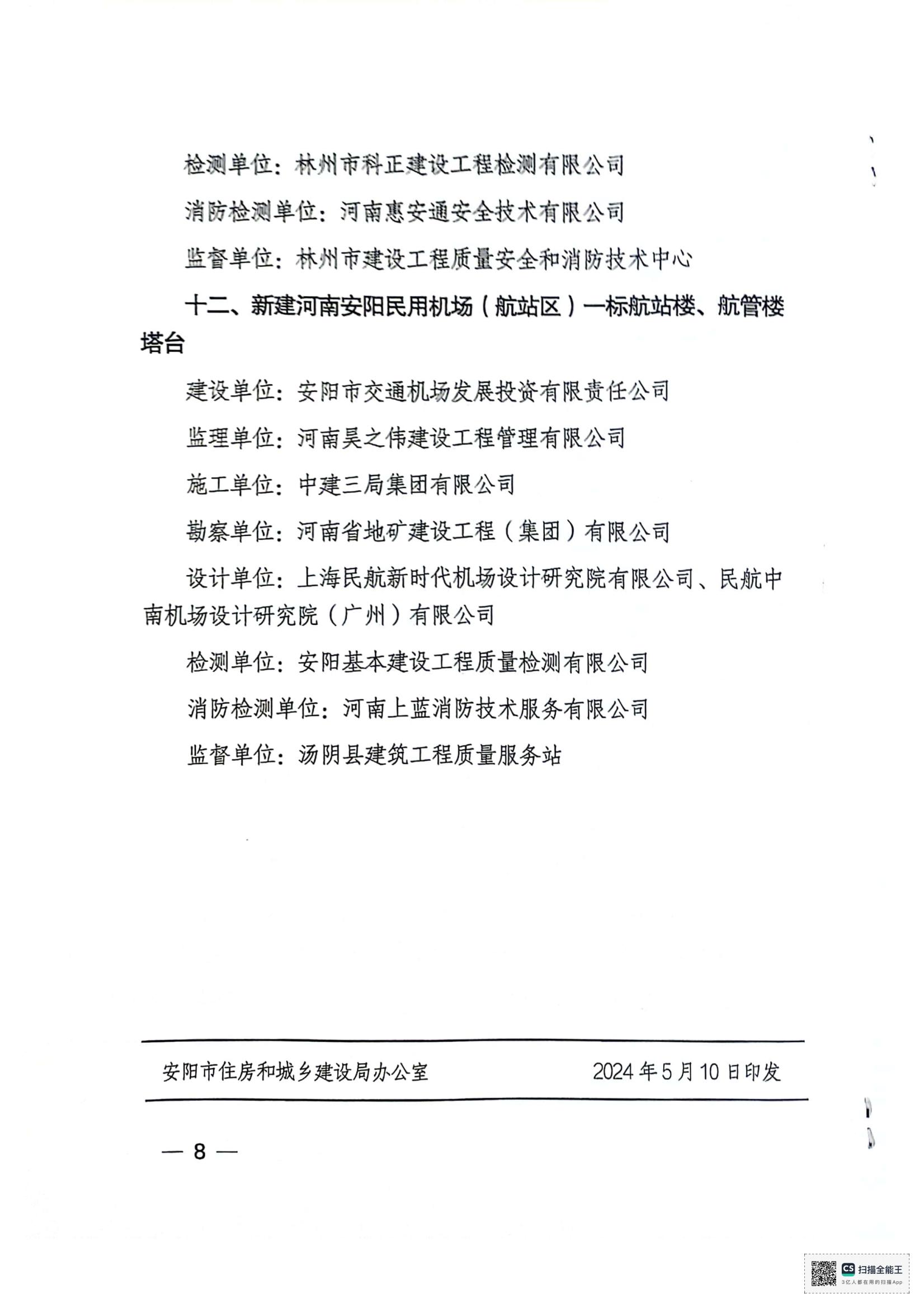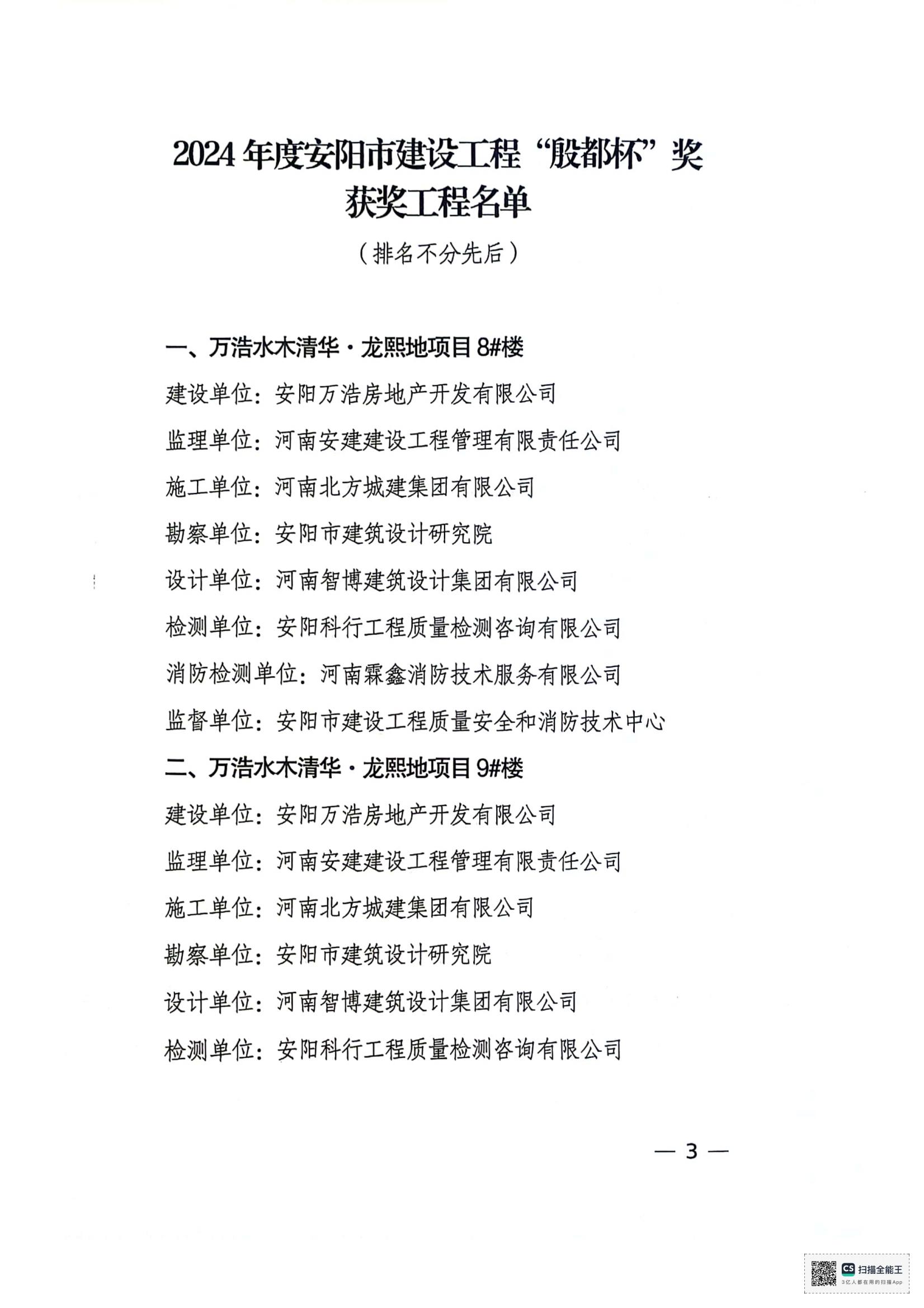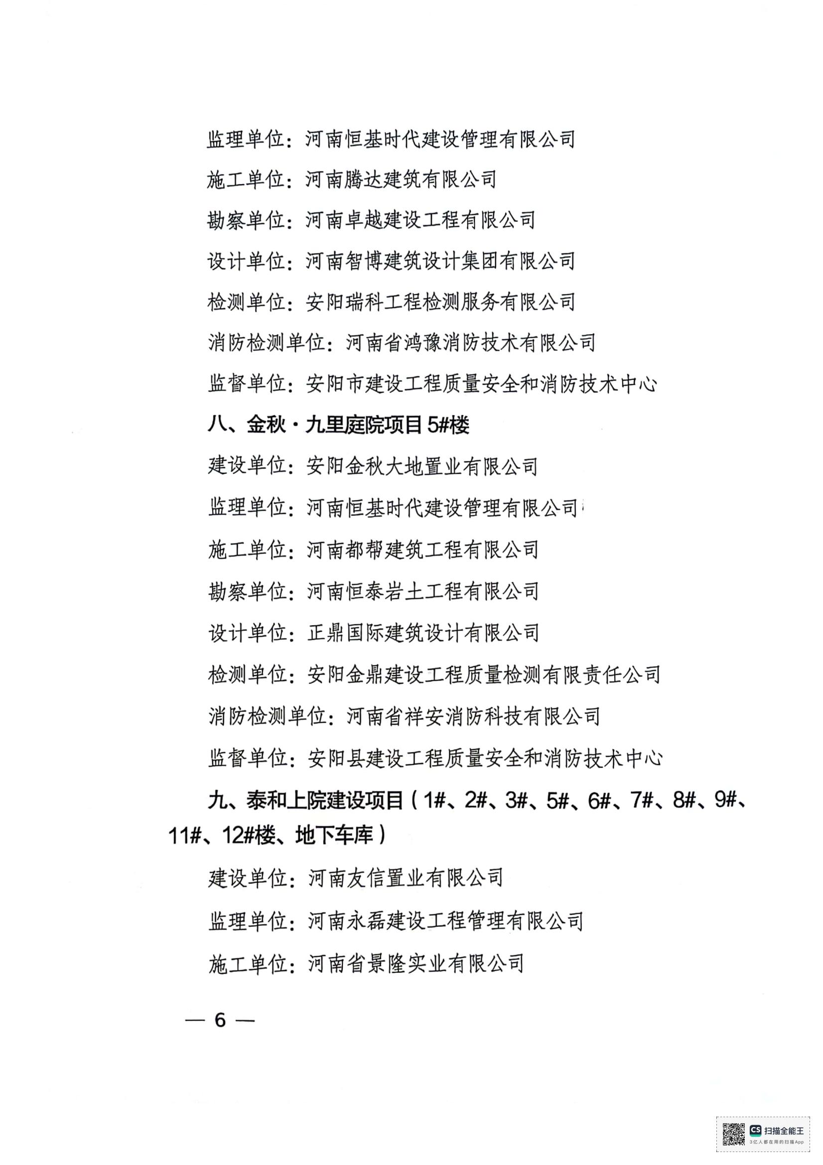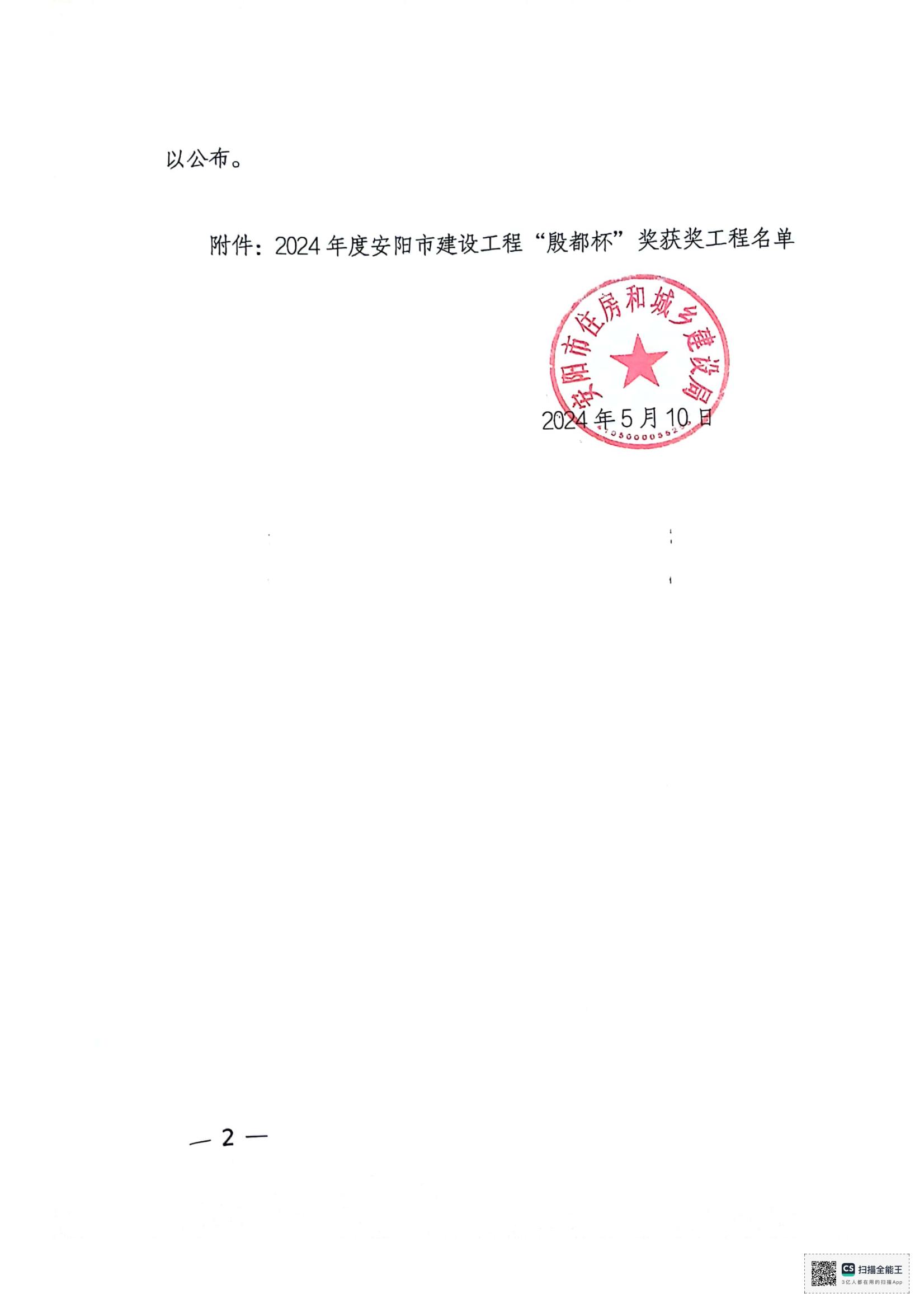 安陽市住房和城鄉(xiāng)建設局文件關于公布2024年度安陽市建設工程”殷都杯“獎工程項目的通知