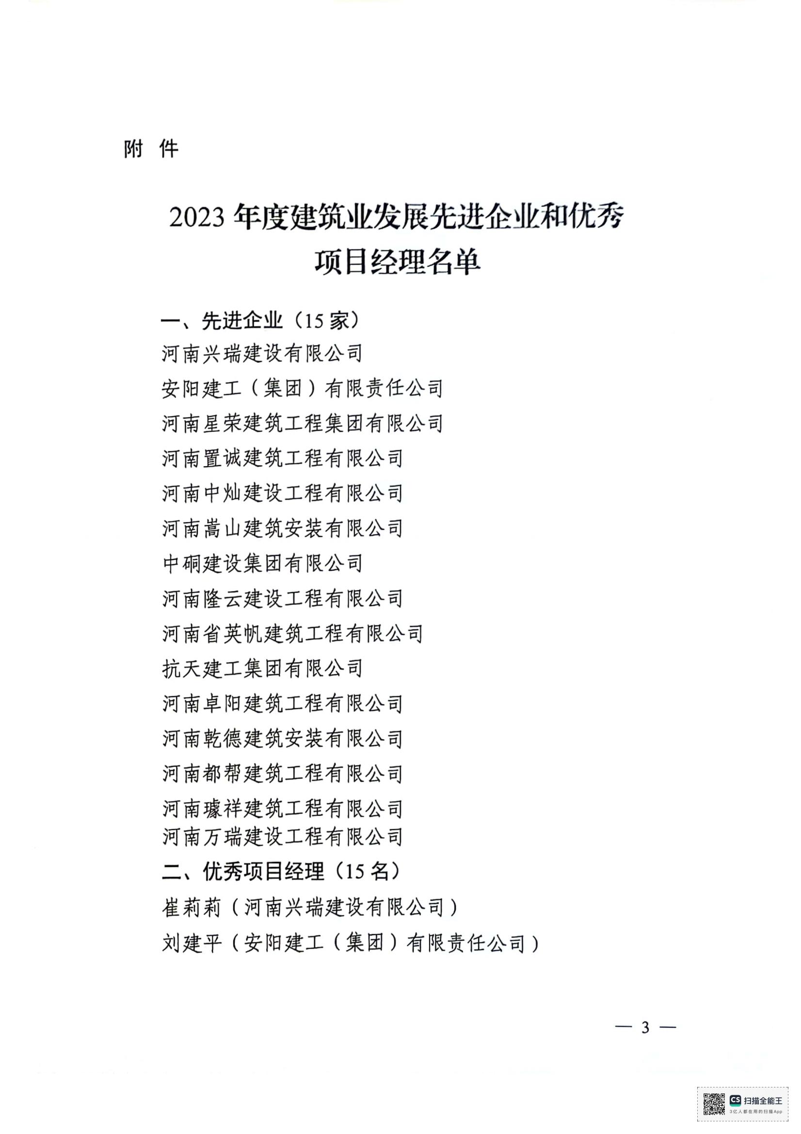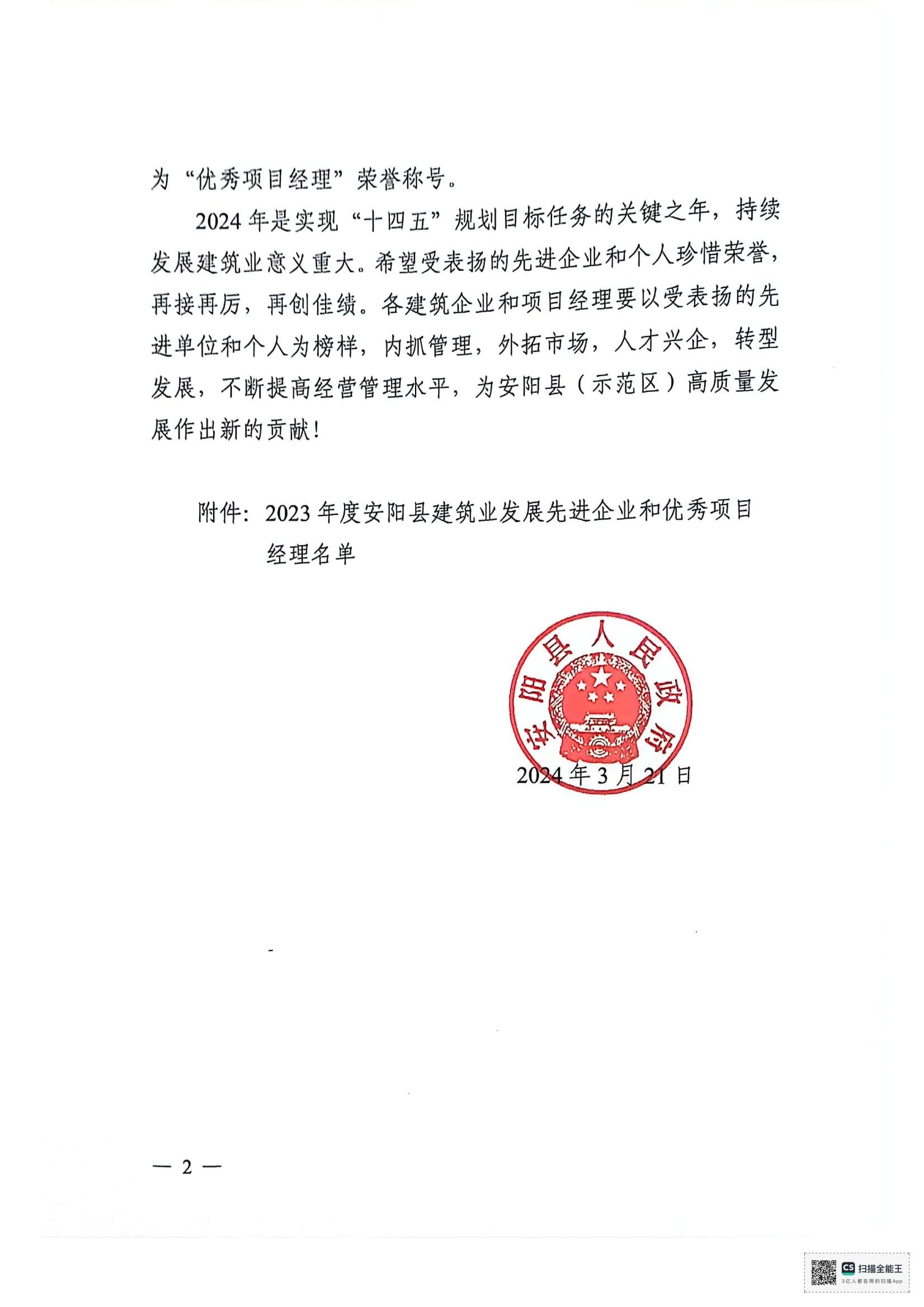 安陽縣人民政府關(guān)于表揚(yáng)建筑業(yè)發(fā)展先 進(jìn)企業(yè)和優(yōu) 秀項(xiàng)目經(jīng)理的決定